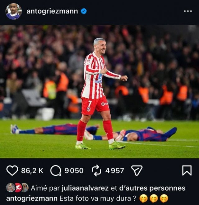 La publicación no era nada inocente. De hecho, Griezmann repitió una frase que el FC Barcelona había publicado la temporada pasada cuando el club catalán celebró una victoria sobre el Atlético con exactamente el mismo mensaje. Para el internacional francés, fue la manera perfecta de vengarse.