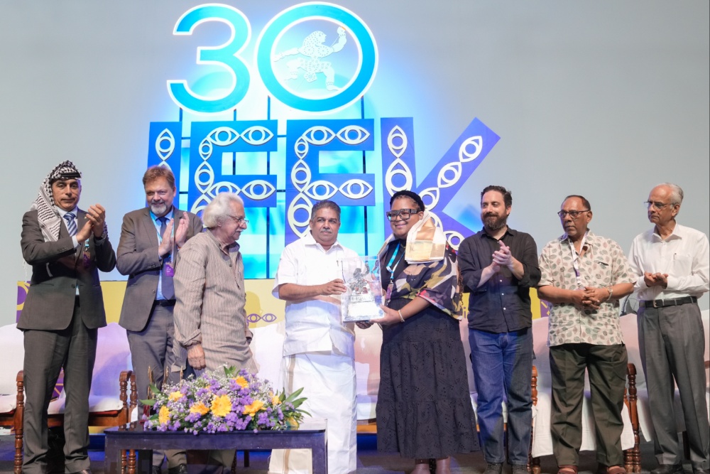 Kelly Fyffe-Marshall recibió el Premio Espíritu del Cine y pronunció uno de los discursos más apasionados de la noche. «Estar aquí, en el Festival Internacional de Cine de Kerala, es un honor que llevaré conmigo toda la vida», declaró. Describió su trabajo como arraigado en «luchar contra las injusticias que enfrenta la comunidad negra en todo el mundo», y añadió que «una injusticia para una comunidad es una injusticia para todas las comunidades». Enfatizó que «nuestra lucha está interconectada y nuestra liberación está entrelazada», e instó al público a «generar un impacto» creando seguridad y dignidad en sus propias comunidades. Calificando la solidaridad como «una elección diaria», afirmó que este honor era «uno de los más grandes» de su vida y agradeció al IFFK «por darme el espacio para historias como la mía».