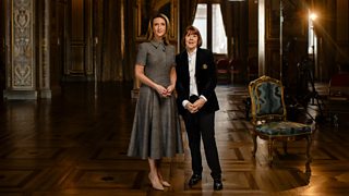 Victoria Derbyshire y Gisèle Pelicot durante una entrevista para BBC Newsnight en el Hôtel de Ville de París, Francia.