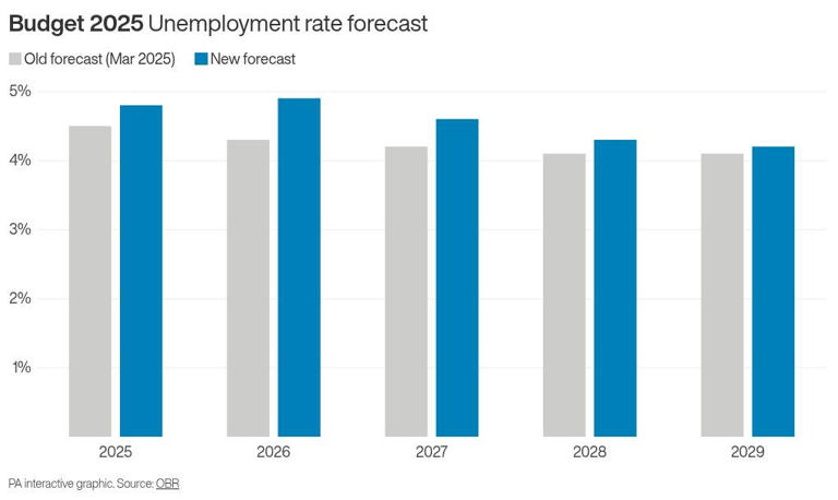 Esto se produjo cuando el pronosticador oficial del Reino Unido también informó que el crecimiento económico será más débil de lo esperado desde 2026 hasta el final del actual gobierno laborista , ya que la carga fiscal sobre la economía continúa aumentando.