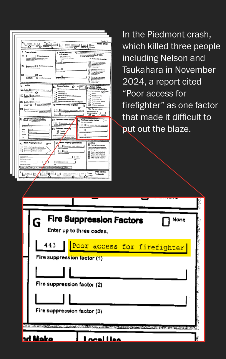 “Estas decisiones de diseño crearon un riesgo altamente previsible de que los ocupantes de los asientos traseros que sobrevivieran a un accidente quedaran atrapados si el vehículo se incendiaba”, se lee en la demanda de Tsukahara. Ambas demandas en el accidente de Piedmont señalan que los mecanismos de respaldo para abrir las puertas, aunque se explicaban en el manual del usuario, no estaban etiquetados y, por lo tanto, era improbable que los pasajeros los conocieran.